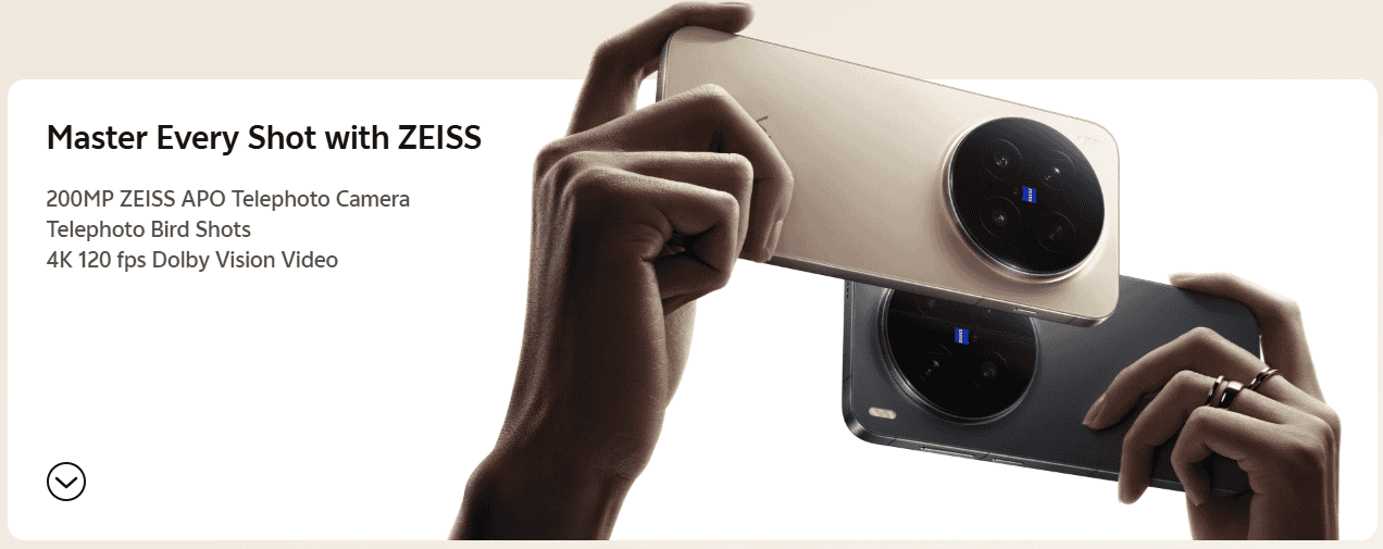 Vivo X 300 Pro full specifications, antutu score with new zeiss technology telephoto lens for capturing fine images from even far away distance. it comes in two colors Dune Gold and Elite Black. It has an Ingress Protection Rating – IP68 & IP69. The Operating System is OriginOS 6 and Android Version is Android 16.